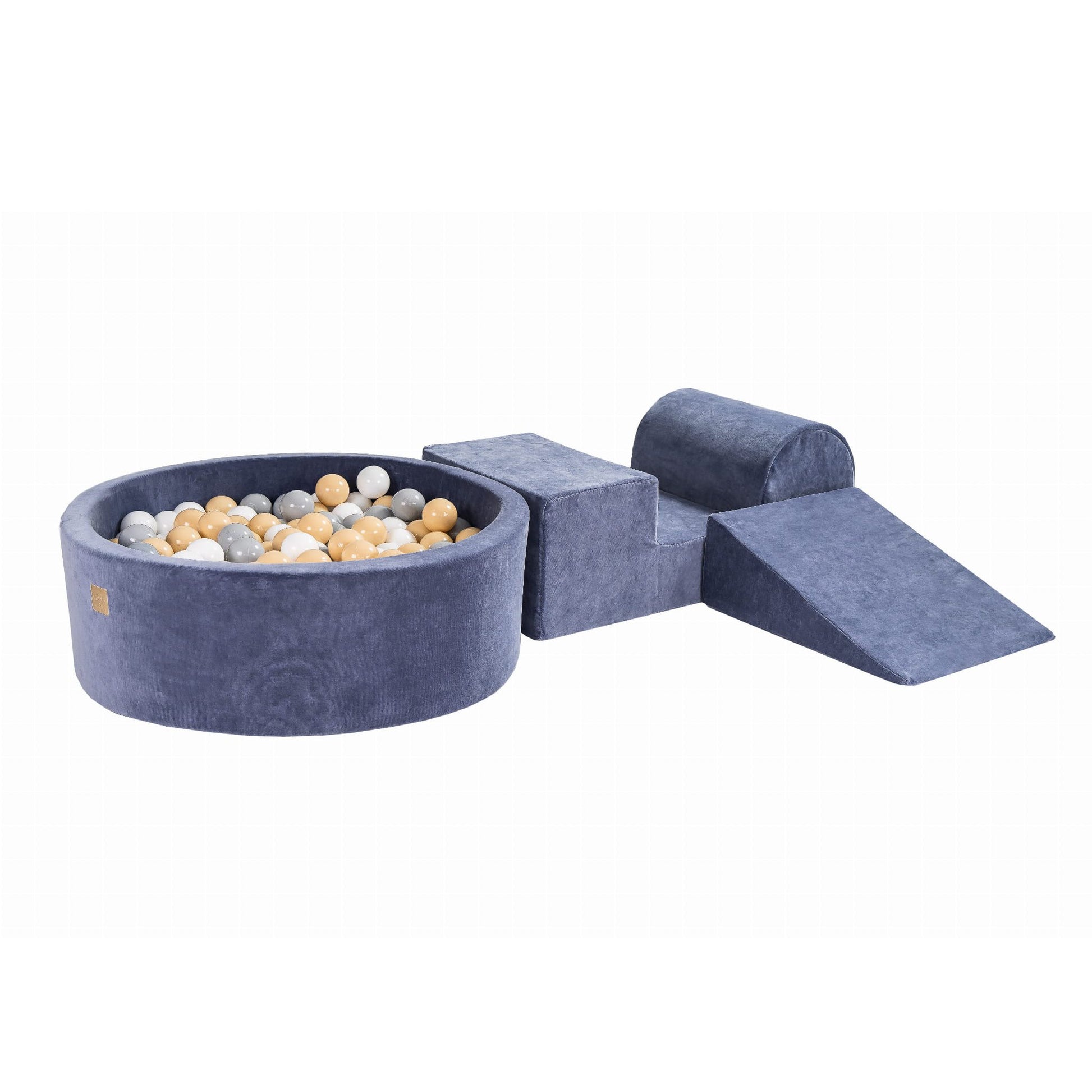 Foam 3 Elements Playset With Ball Pit 90x30cm With 200 Balls Certified, Velvet, Blue Gray: Grey/Beige/White