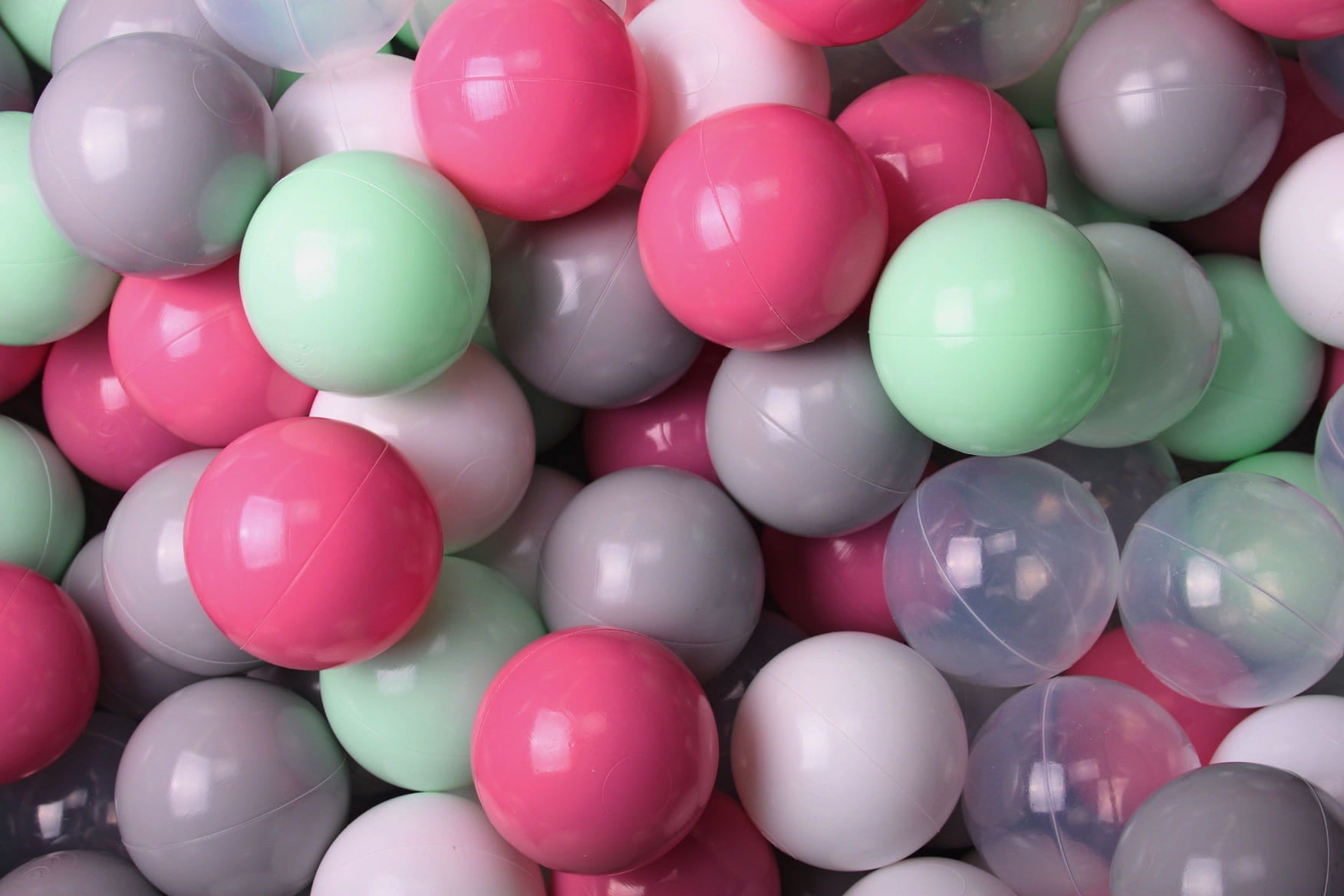 Soft Plastic Balls 7cm For The Ball Pit Certified Set 100pcs: Mint/Gray/Light Pink/Transparent/White