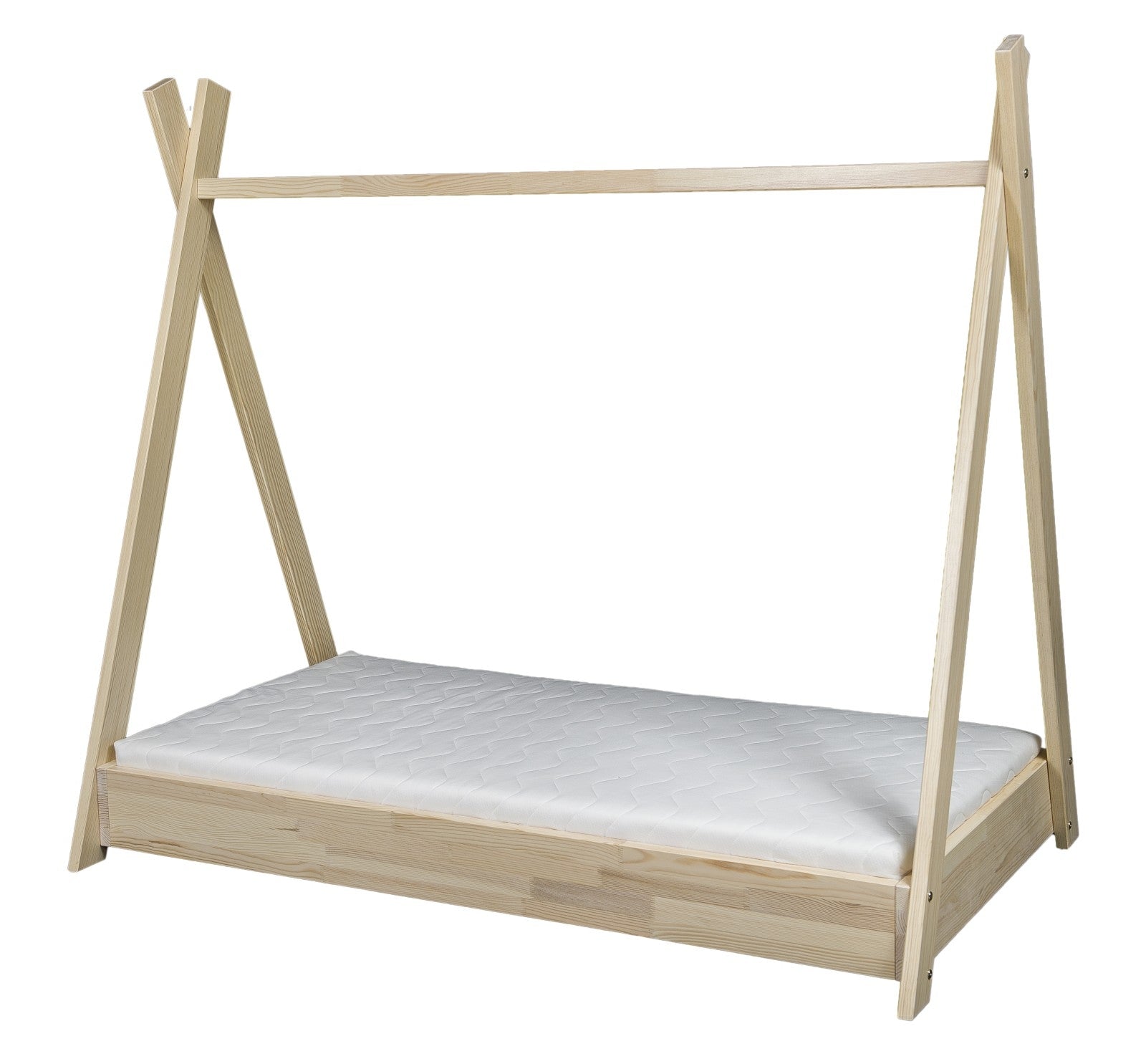 This house-style bed creates the perfect blend of cozy sleep and imaginative play for any child’s room. Simply drape a fabric over the frame to transform it into a charming tent, providing an ideal setting for endless fun and relaxation. With its Scandinavian design, this bed complements any decor, making it a stylish addition to your child’s space. Built from premium pine wood and paired with a supportive ECO mattress, it combines durability, comfort, and safety for restful nights and playful days. 🌈
